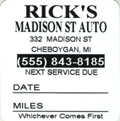 This label offers room for your company logo and space for marking date and miles also marking specific services.